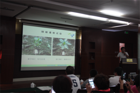 四川太抗華北區(qū)域總經(jīng)理張克東就太抗?系列產(chǎn)品、當(dāng)今農(nóng)藥發(fā)展方向和趨勢進行了詳細(xì)的剖析和講解——現(xiàn)階段正處于未來農(nóng)業(yè)發(fā)展的風(fēng)口,規(guī)模農(nóng)業(yè)、現(xiàn)代農(nóng)業(yè)示范園和生態(tài)農(nóng)業(yè)是發(fā)展方向,隨農(nóng)業(yè)轉(zhuǎn)型而變的是農(nóng)資企業(yè)的轉(zhuǎn)變,量身定制的作物整體解決方案、專業(yè)的技術(shù)指導(dǎo)與服務(wù)、產(chǎn)前產(chǎn)中產(chǎn)后全程服務(wù)、創(chuàng)新的可持續(xù)的解決方案是農(nóng)資企業(yè)生存的必選之路,連作障礙和新生病蟲草害是現(xiàn)代農(nóng)業(yè)面臨的難題與痛點。緊接著他介紹了太抗?枯芽春TM和太抗?哈茨木霉菌的優(yōu)勢及其在作物病害上的作用機理。