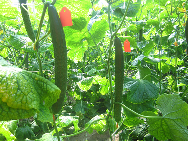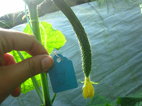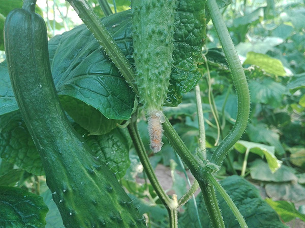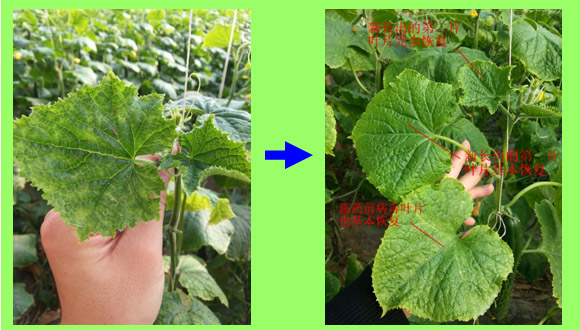 小抗在拜訪有機基地時發現,有些棚內的黃瓜出現把特別長的現象,是缺水缺肥所致,有機生產中通常會出現營養缺乏的現象,近期氣溫回升,植株生長較快,營養需求較大,不僅要多補充葉面肥,還要增加生長調節劑的施用,使用太抗?幾丁聚糖可有效減輕這種生理性病癥。